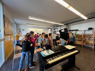 A les sessions de música els i les alumnes de 4t primària continuen treballant la cantada de l’Espill Encantat amb les sessions del professorat del Conservatori de Cervera i de l’escola de música de Guissona. Seguim aprenent les lletres de les cançons i els moviments per poder fer una bona actuació a l’Ateneu de Guissona.