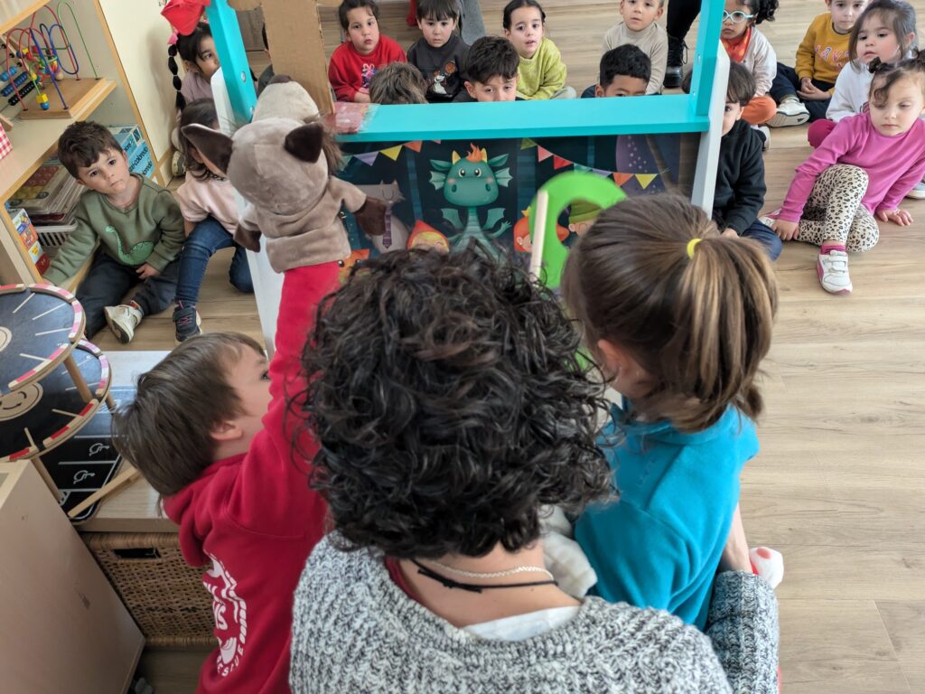 Evidentment, abans de marxar a casa vam aprofitar per fer una mica de teatre a la classe i cada infant va poder tenir el seu momentet darrera el teatrí.