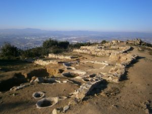 Vam fer una part del trajecte en autocar, fins el Mirador de la Vallensana, i un cop allà, vam caminar de valent fins a arribar al ben anomenat Turó de Les Maleses. Llavors, al final d’un caminet ben amagat, ens vam trobar amb la meravella del jaciment iber de Les Maleses. I quines vistes! El mar des del Maresme al Garraf, Barcelona, tot el Vallès i la nostra muntanya màgica, Montserrat.