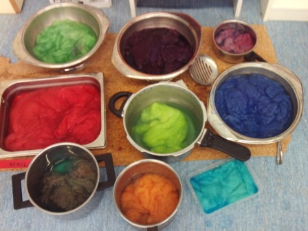 Desprès de molts intents, ho hem aconseguit!!!! Portem dies intentant tenyir llana, primer ho vam provar a la nostra manera, desprès, amb un tint químic, però res ens va funcionar. Com que havíem vist vídeos on ens explicaven el procediment per fer-ho amb elements de la natura ho vam provar així. Vam fer una llista