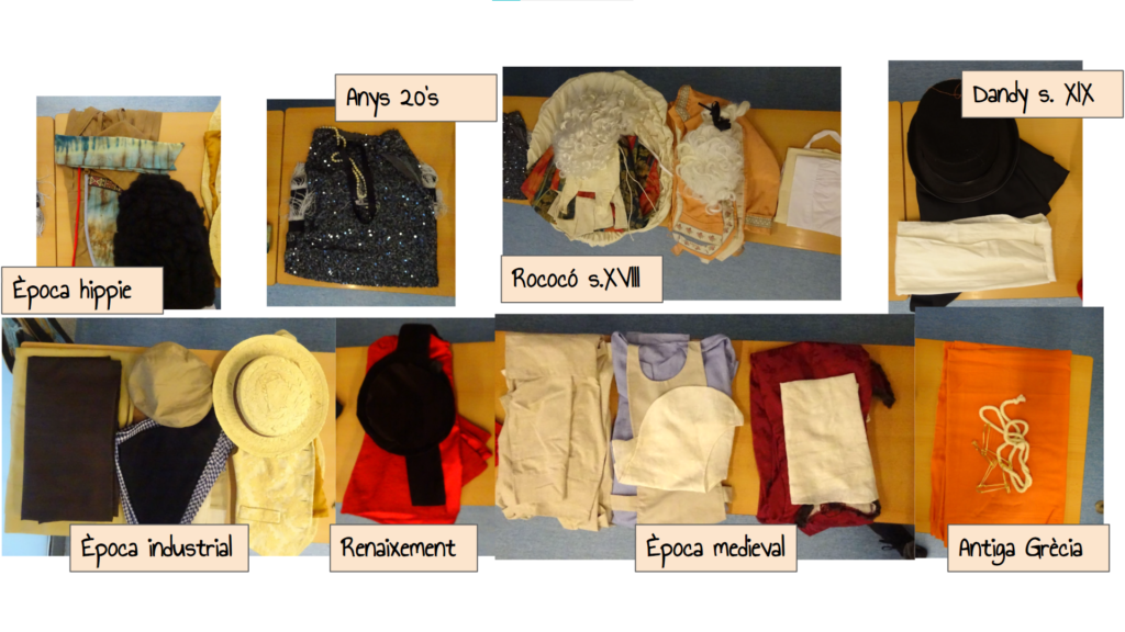 Seguim treballant i investigant sobre la roba i com a evolucionat en la història. Del museu tèxtil de Terrassa vam aconseguir  un maleta que tenia diferents teixits i vestits de diferents èpoques. vam analitzar i situar els vestits a la línia del temps en la època que corresponien. A la maleta hi havia diferents tipus […]