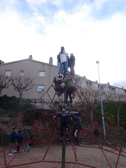 Al matí, mentre esperàvem entrar al Casal, vam estar jugant al parc de l’aranya que hi ha a Vacarisses, i després vam estar jugant a futbol amb una altra escola a la pista de futbol al costat de la piscina municipal.