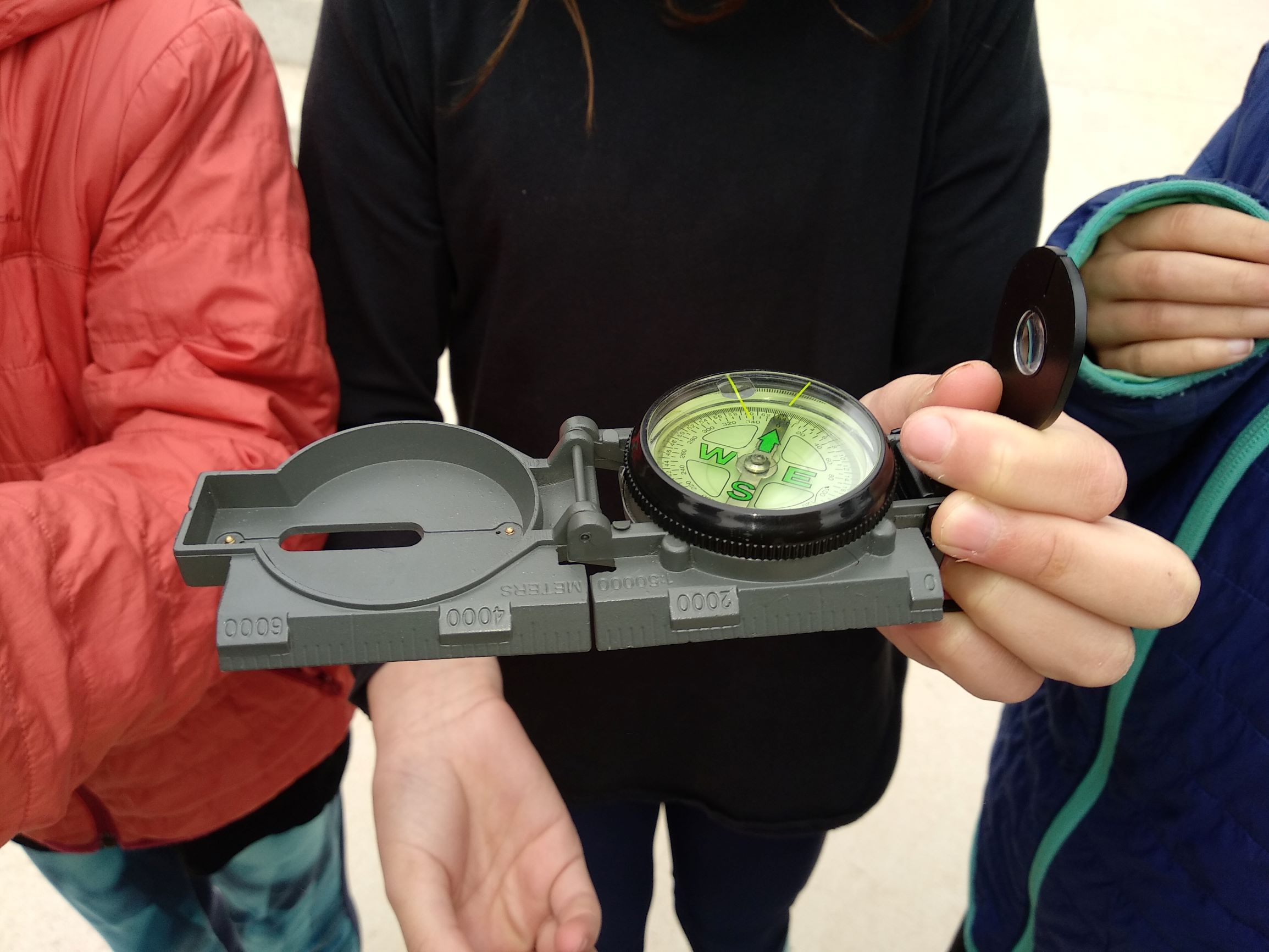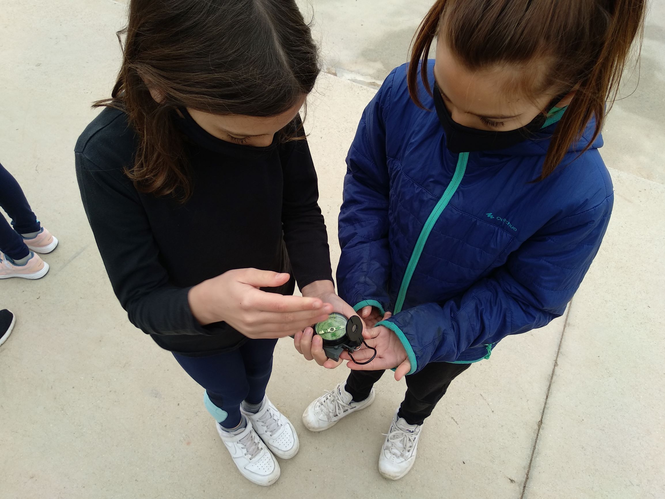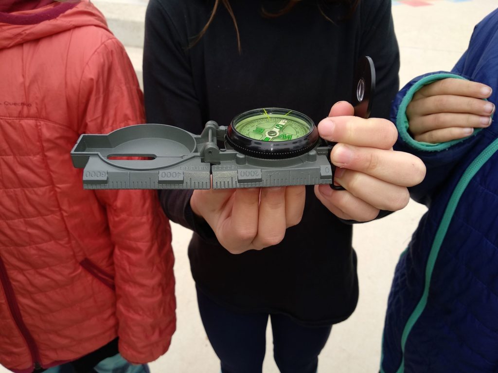 L’experiment del laboratori començava a partir de trastejar amb la brúixola, on vam sortir a fora per parelles amb una a les mans. El repte era aconseguir que la brúixola no assenyali el nord, en principi un repte bastant complex. Vam estar cinc minuts fent diferents proves, girs, salts, posant-la del revés, corrent…fins que algunes parelles van tenir una idea: apropar un imant a la brúixola. Quan la vam apropar la brúixola va deixar d’assenyalar el nord i començava a seguir el moviment del imant que tenia a sota!