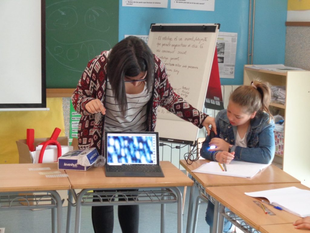 L’ Èlia, una investigadora del CosmoCaixa, ens va venir a explicar coses sobre la contaminació i les partícules que entren dins el nostre cos. Ens va explicar que les partícules PM1 son 40 vegades mes petites que el gruix d’un cabell humà i ho vam poder comprovar amb grups, lupes i portàtils. També que totes les partícules entren pel sistema respiratori, i que van trobant diferents filtres que les retenen, fins que algunes partícules molt, molt petites, arriben a la sang i també al nostre sistema nerviós.
