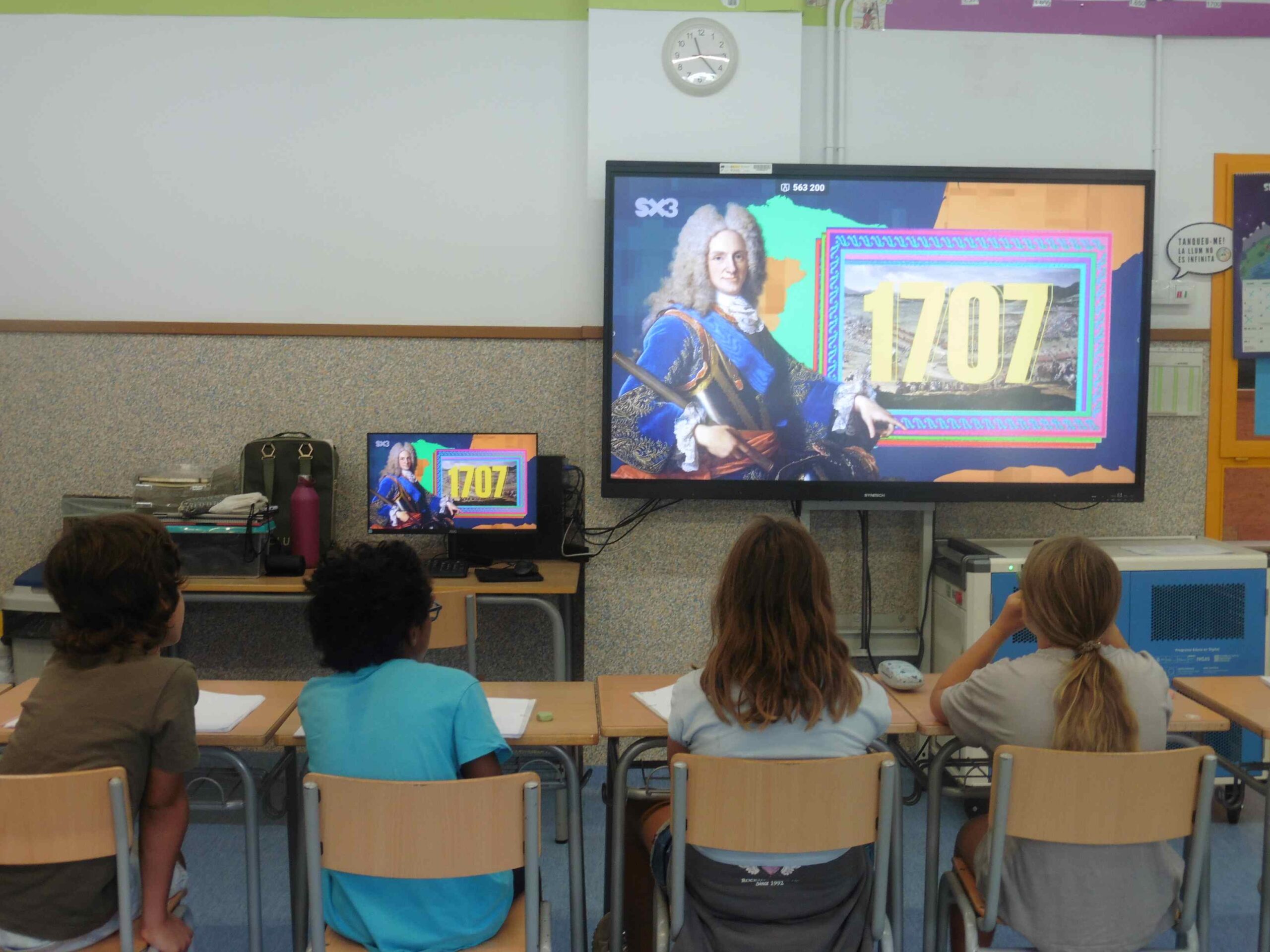 Vam descobrir que l’11 de setembre de 1714 va acabar la Guerra de Successió Espanyola i Catalunya va perdre el govern propi, el català i les seves pròpies lleis. Va ser així com Catalunya va deixar de ser un país propi i va ser governat, juntament amb la resta d’Espanya, per Felip V de Borbó, a través d’una monarquia absolutista. Monarquia vol dir que el rei és el cap d’Estat i absolutista vol dir que tenia el poder absolut en les lleis.
