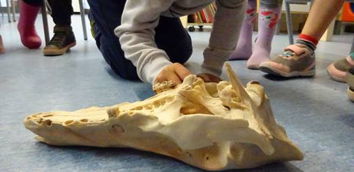 L’altre dia l’Albert ens va portar a l’escola un crani de porc senglar que va trobar el seu pare, l’hem tocat i l’hem manipulat i és molt dur!!