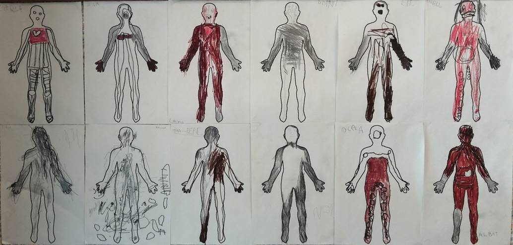 Alguns infants han dibuixat els ossos, unes cordes que ens ajuden a moure’ns i el cor.