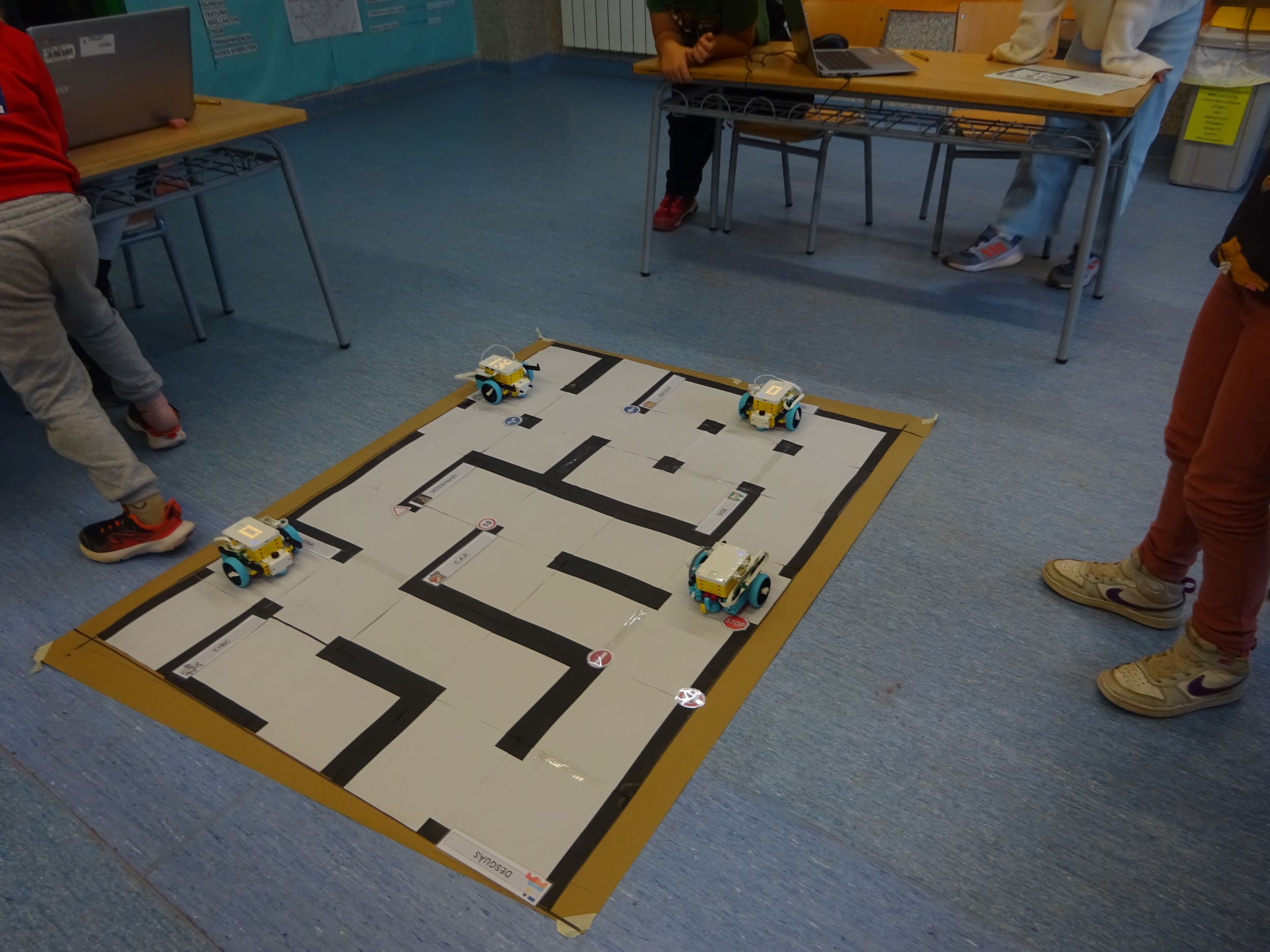 Vam començar amb un repte del primer dia on havíem de construir un cotxe que es mogués sol; amb aquest projecte hem aprés quines senyals trànsit hi ha i també com programar un robot de Lego.
