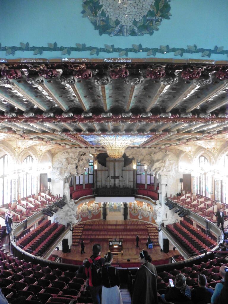 Quan vam entrar al Palau, vam anar a la sala de concerts i vam quedar fascinats: semblava que la lluerna hagués de caure, vam observar les 18 muses que hi ha a l’escenari, hi havia unes roses blanques i vermelles precioses al sostre… tota la sala estava plena de detalls!