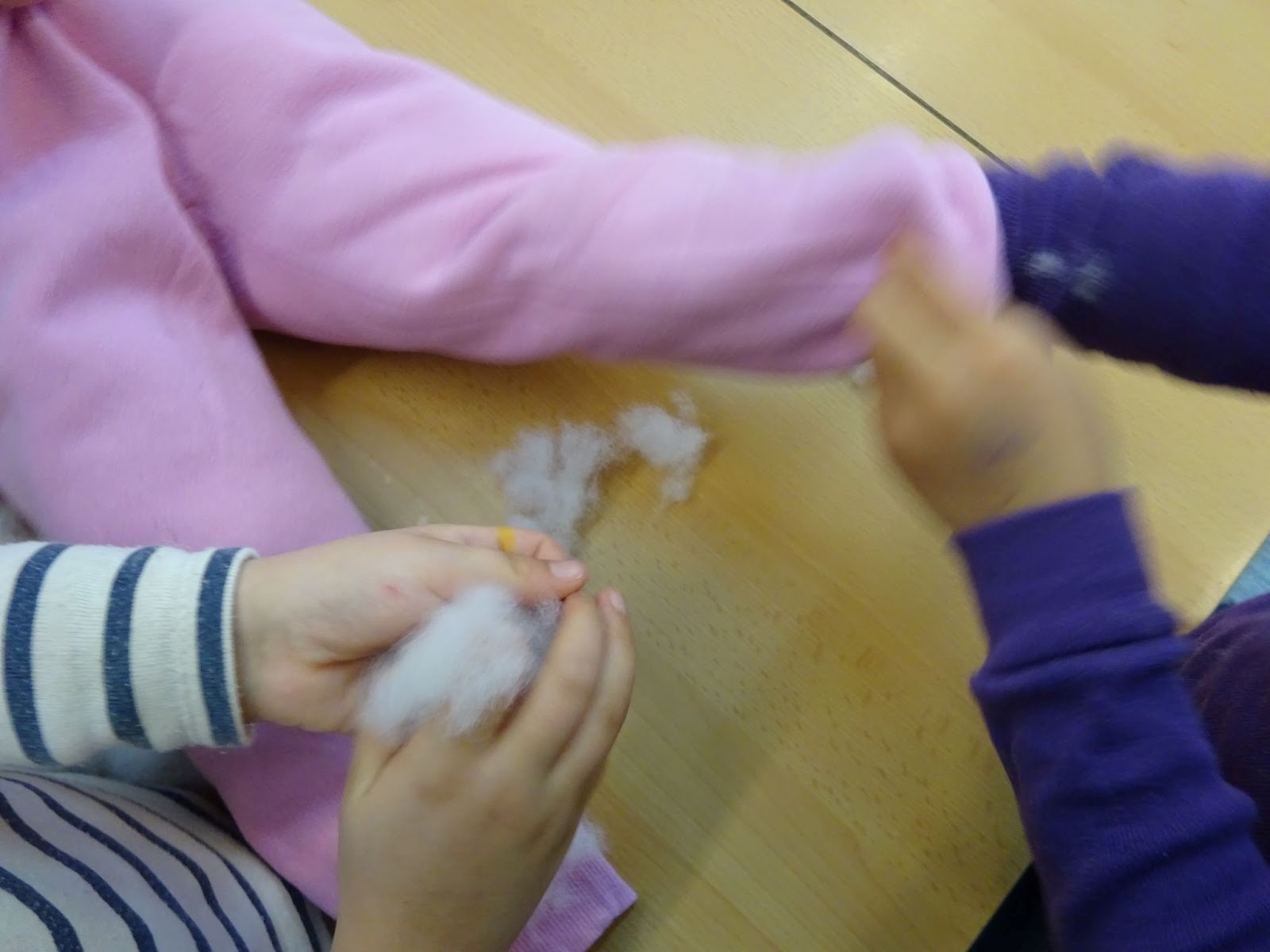 Nosaltres hem volgut també provar de fer creacions amb roba. Amb polièster hem omplert roba de persona; semblaven persones, però sense pell ni carn.