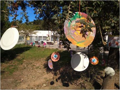Hi ha un arbre d’ulls enfadats. L’hem fet perquè els ulls miren si algú tira brutícia. No són ulls de veritat, ens ho hem d’imaginar.