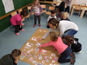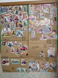 La primera joguina que vam mirar van ser les nines. Vam retallar les fotos i les hem penjat en un mural. Després les hem comptat i hem vist que hi havia més nenes que nens.