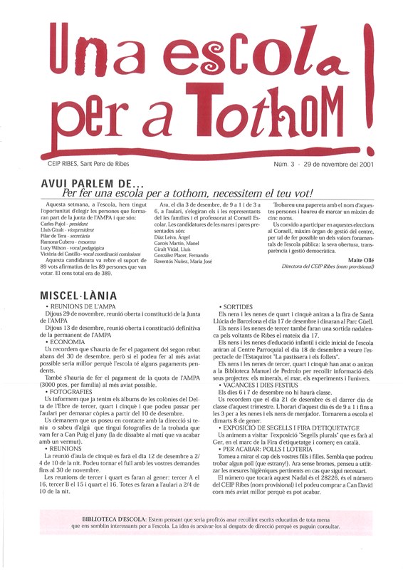 Full Informatiu “Una Escola per a Tothom”