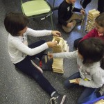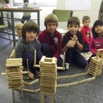 Aquí aprenem a treballar en equip, a construir estructures, a mesurar-les, a dibuixar les coses que volem fer i les que fem. És molt divertit construir, però també destrossar el que fem.