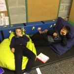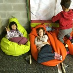 – Ens estirem als coixins i ens relaxem mentre que escoltem música