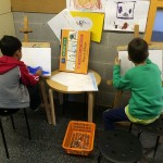 En aquest racó podem fer còmics, inventar-nos històries, fer jocs de lletres a l’ordinador, llegir contes, fer encreuats, gravar vídeos, fer stop motion,… També assagem poemes i històries per anar-les a explicar als nens i nenes d’infantil i al racó de l’Ateneu.