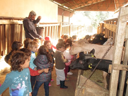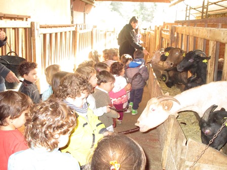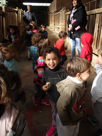Els nens i nenes de P3 han anat a la granja Can Pere de Sant Pere de Ribes. Han fet el taller de conèixer els animals de la granja: han donat de menjar als cavalls, a les cabres, als porcs i han fet un tomb a cavall.