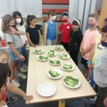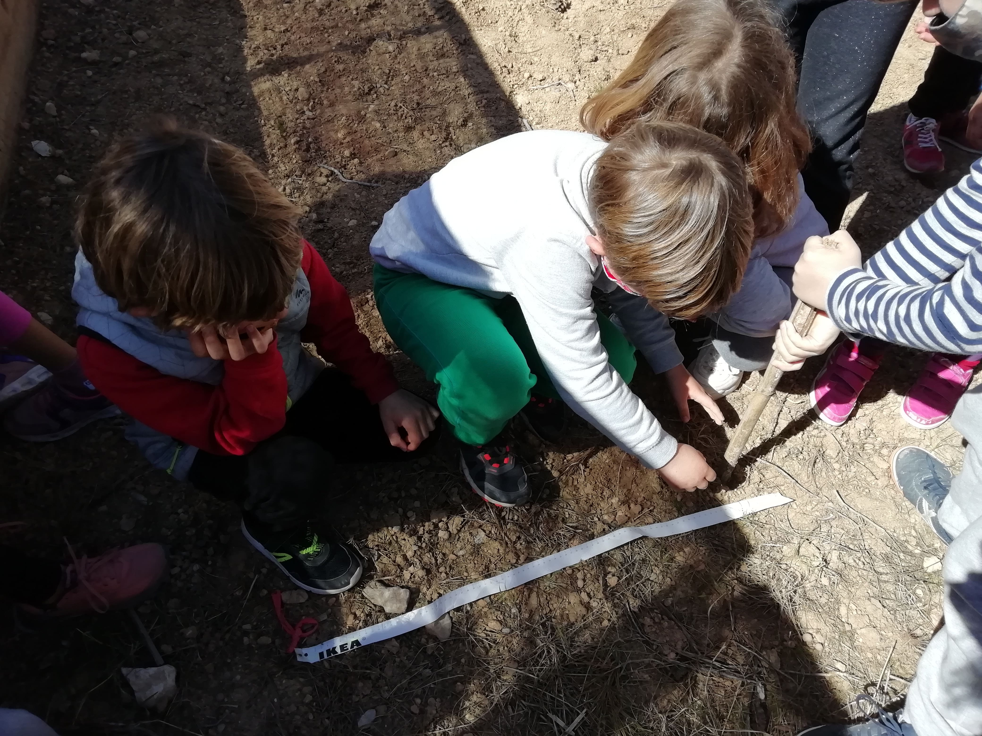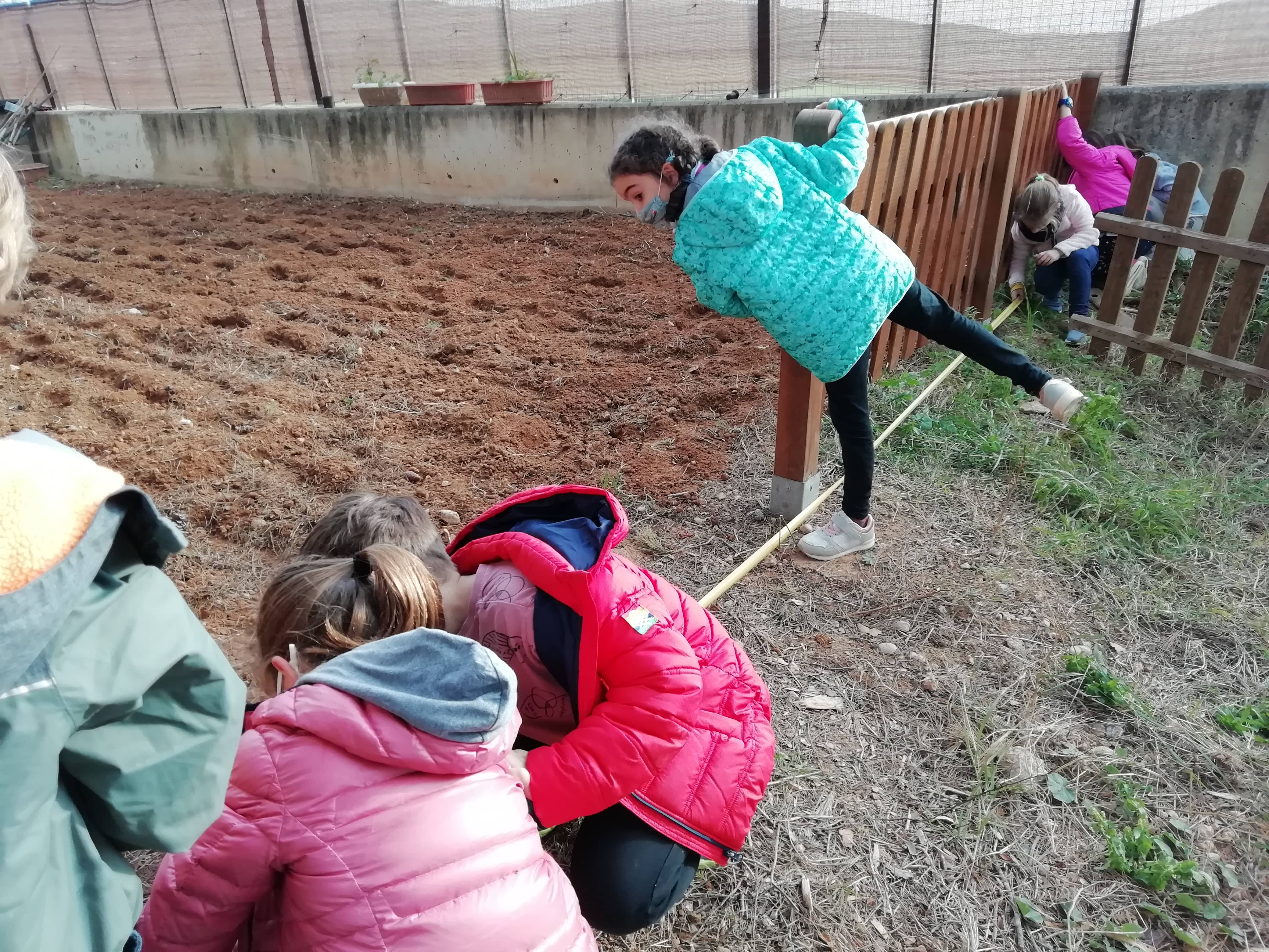 A més a més, vam mesurar l’hort per saber quant espai teníem per plantar. Teníem 4 metres per cada solc, llavors vam haver de fer un càlcul. Per exemple, quantes maduixes podem plantar si cada planta ha d’estar posada a 50 cm una de l’altra?