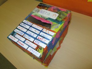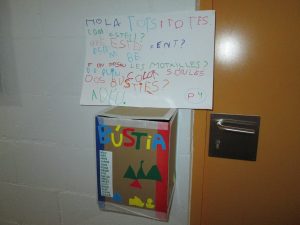 Primer de tot, escrivim els nostres noms i els enganxem a la bústia perquè els altres grups bombolla sàpiguen que és nostra i si volen ens puguin deixar missatges.
