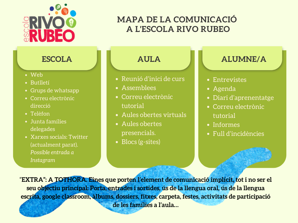 La Comunicació en el sí de l’escola Rivo Rubeo és un puntal important per a la consecució del seu projecte educatiu.