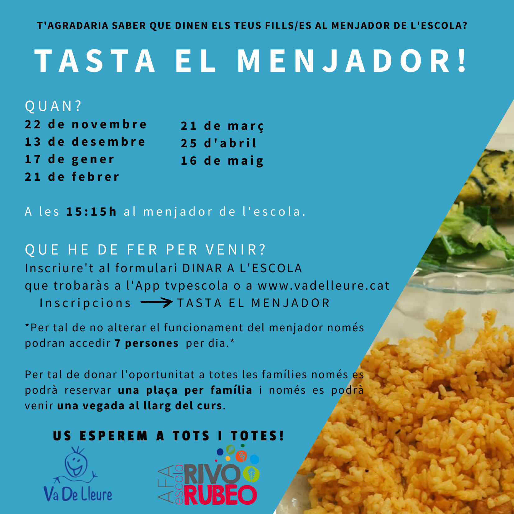 Cal inscriure’s a través del formulari TASTAR EL MENJADOR: