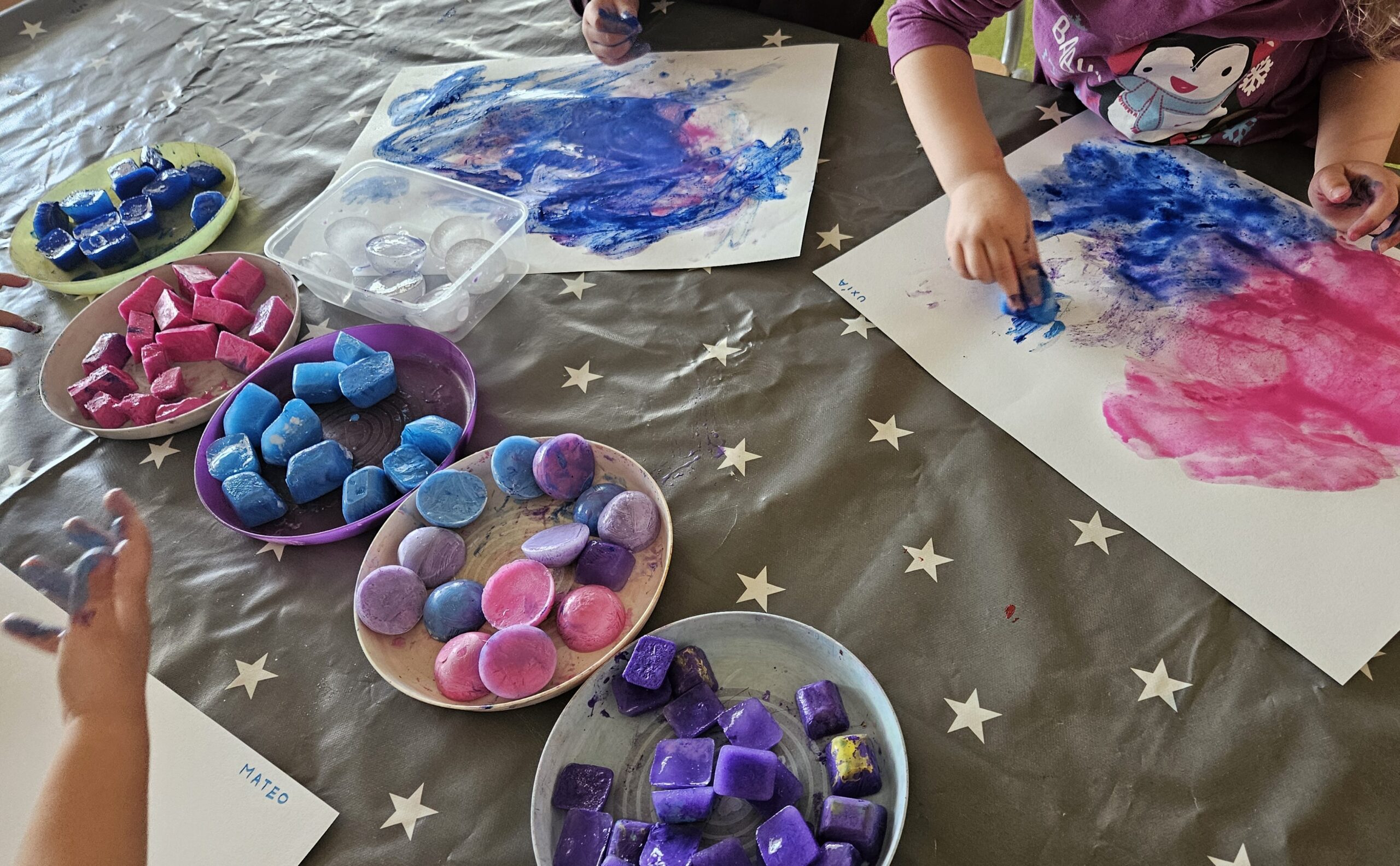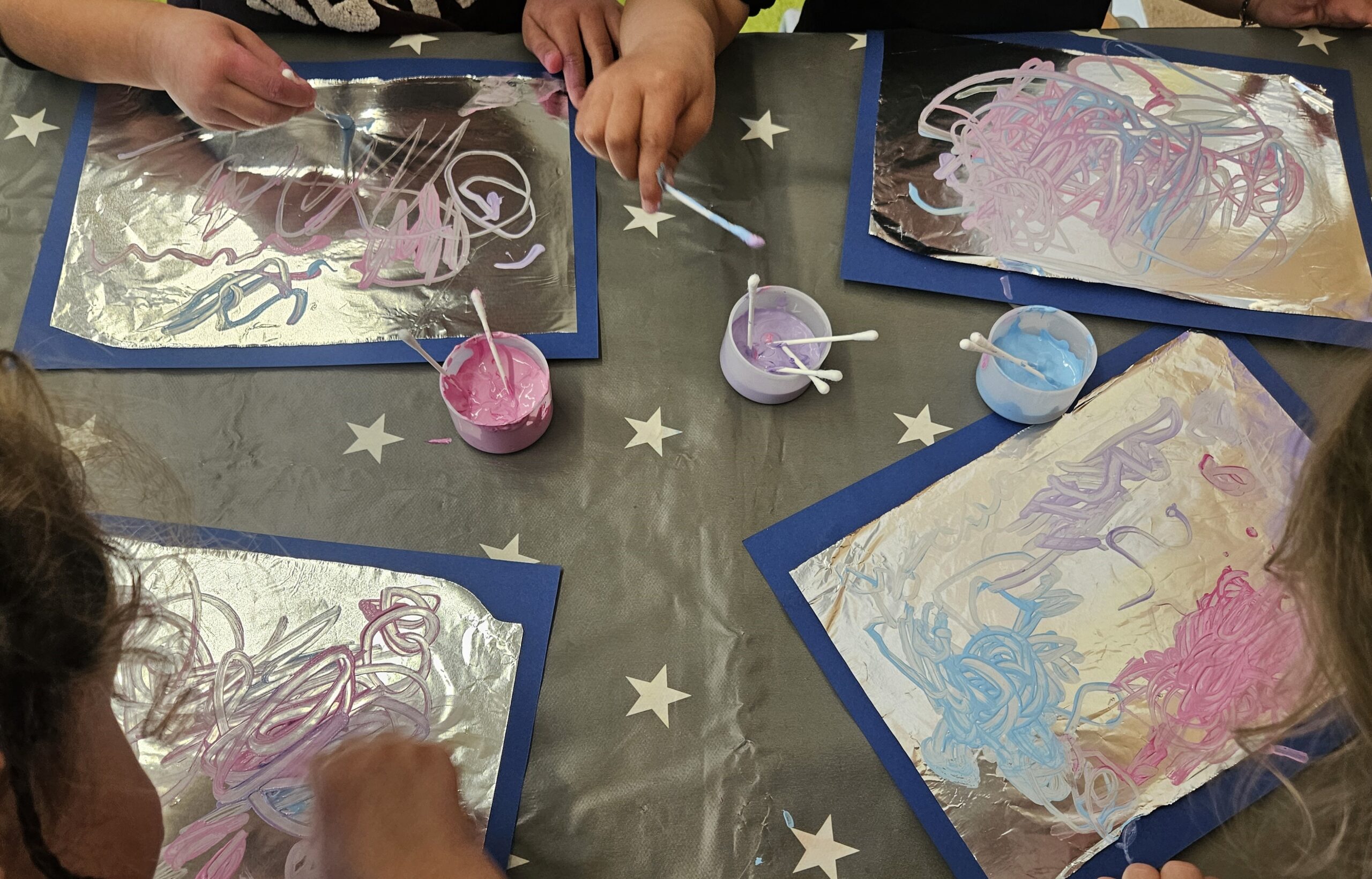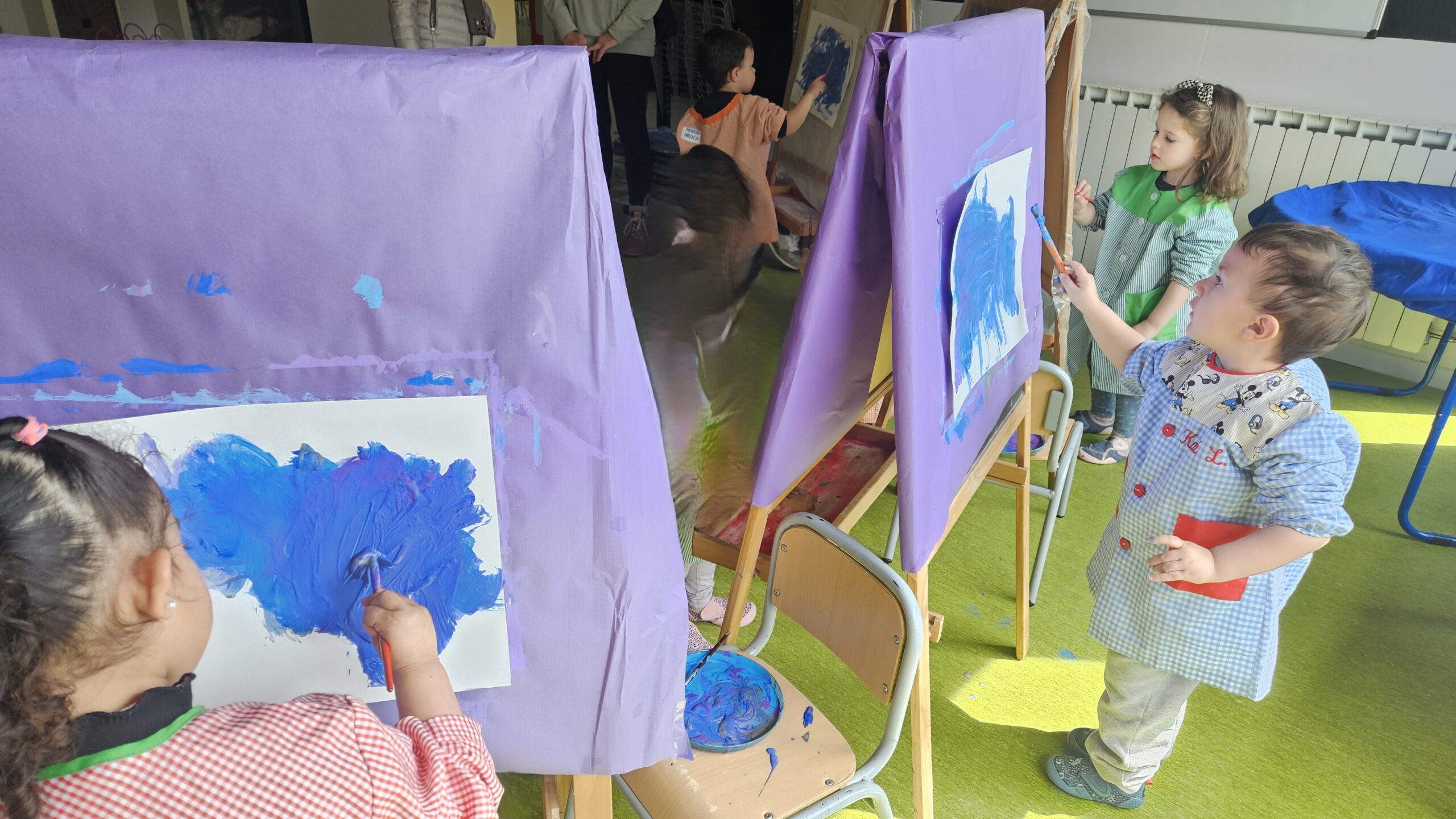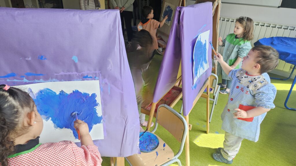 La part artística també ha tingut molt de protagonisme: hem pintat als cavallets utilitzant els colors de l’hivern, hem creat murals col·lectius i hem descobert noves maneres de pintar, com fer-ho sobre paper d’alumini, que ens ha sorprès per les seves textures i efectes.