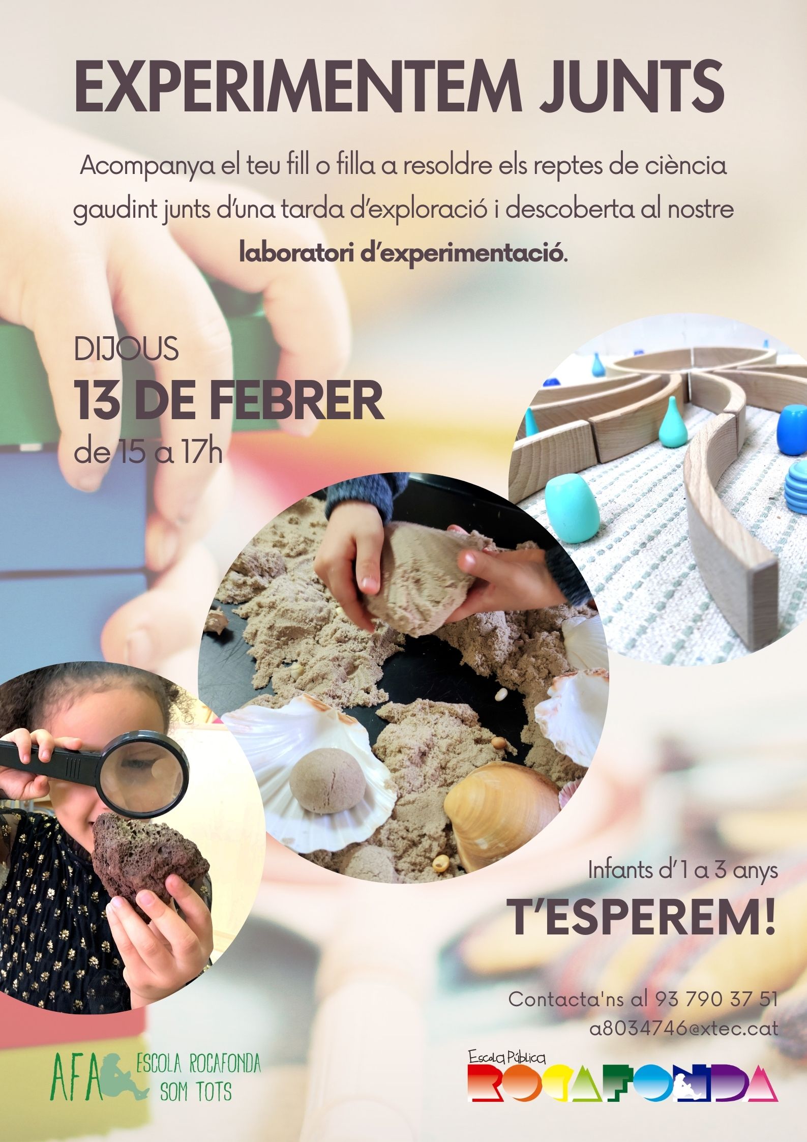 Vine al Laboratori d’experimentació!! Feu un comentari / Per admin / 27 de gener de 2025 / Educació Infantil General Nivells Portada Us convidem a compartir una estona amb els vostres fills i filles d’1 a 3 anys, en el nostre laboratori d’experimentació. Us esperem el proper dijous 13 de febrer de 15 a 17h