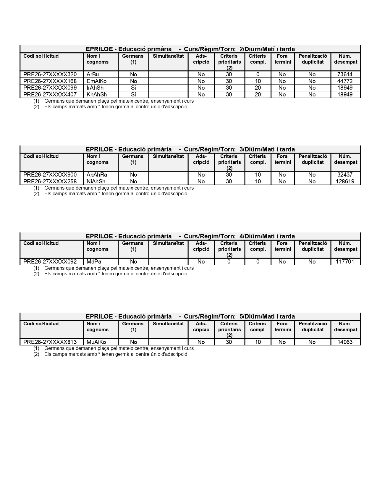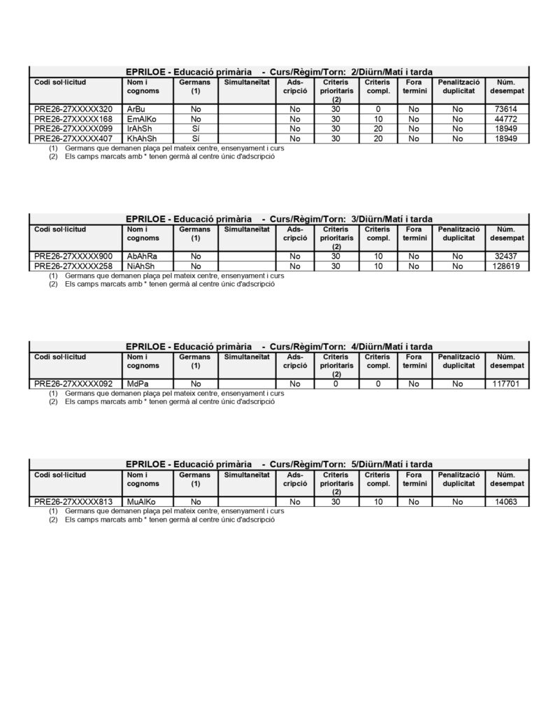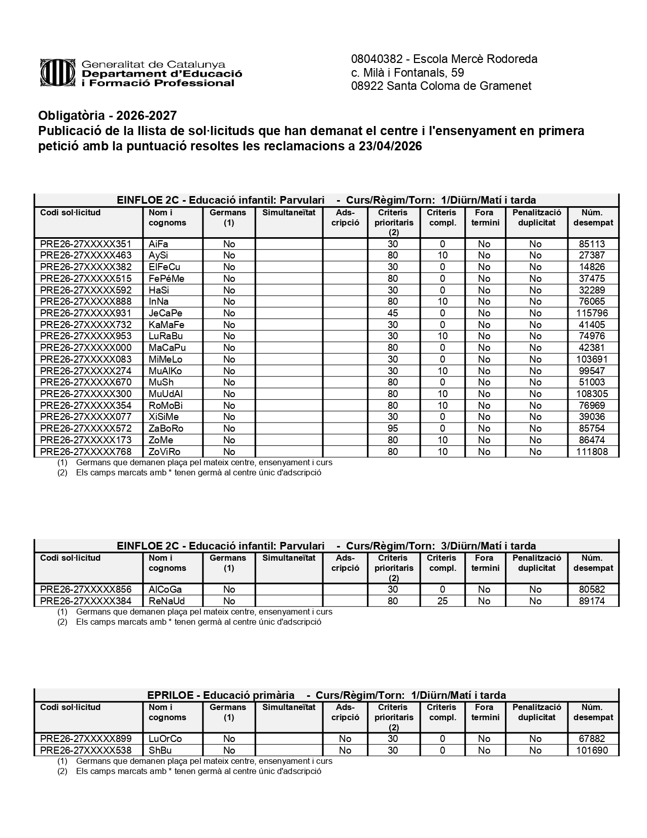Publicació de la llista de so·licituds que han demanat el centre en primera petició.