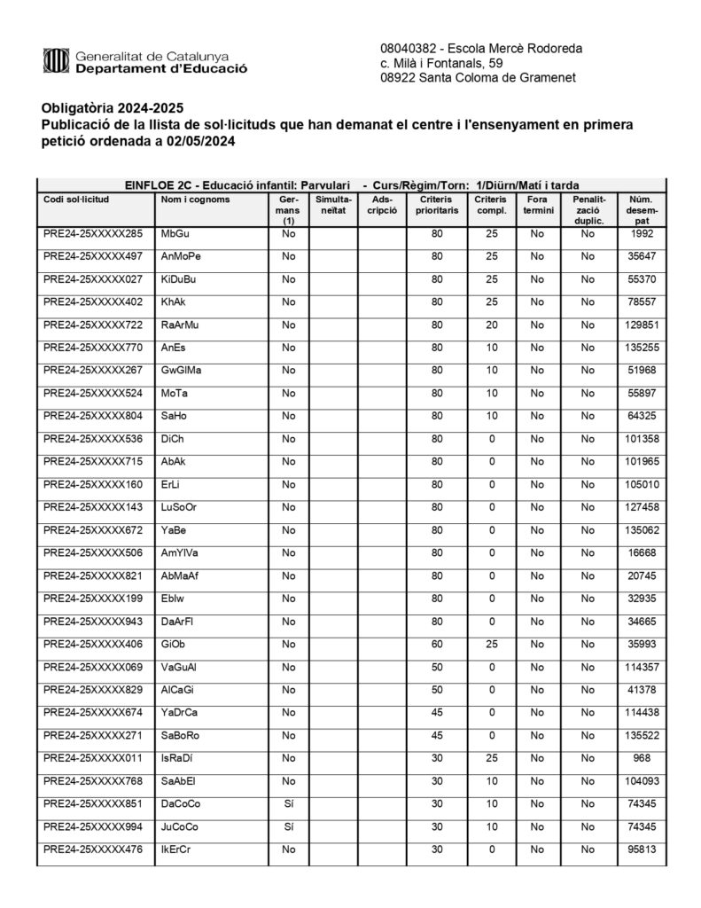 Publicació de la llista de sol·licituds que han demanat el centre i l’ensenyament en primera petició ordenada a 02/05/2024 admin03/05/24