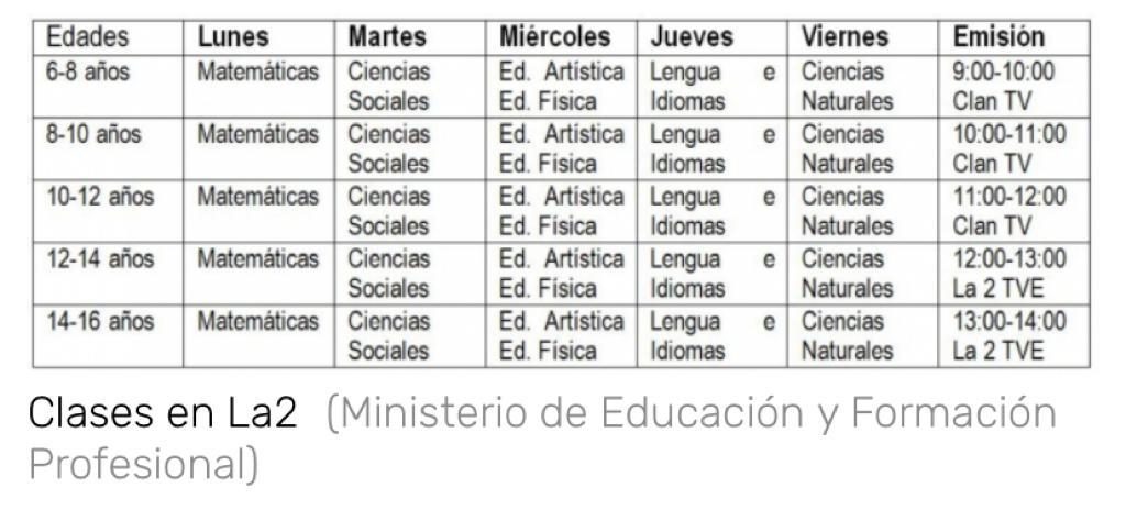 Mireu la programació en funció de l’edat i área. Aquestes classes es duen a terme al canal Clan TV.
