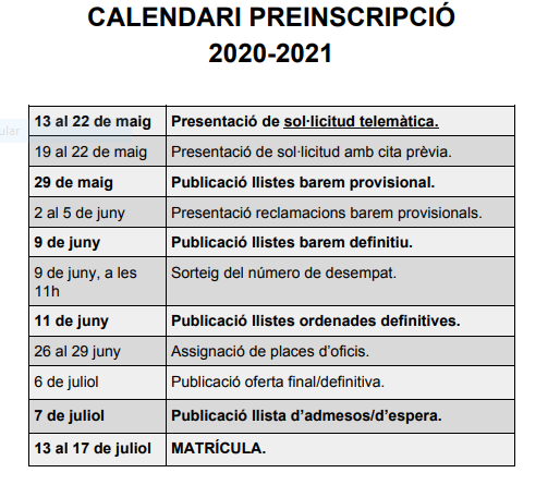 Han sortit publicat les llistes d’alumnes d’admesos i d’espera.