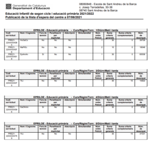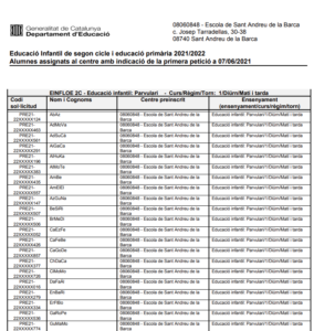 Us informem que han sigut publicada la llista d’alumnes assignats al centre amb indicació de la primera petició a 07/06/2021 i la llista d’espera del centre a 07/06/2021.