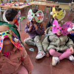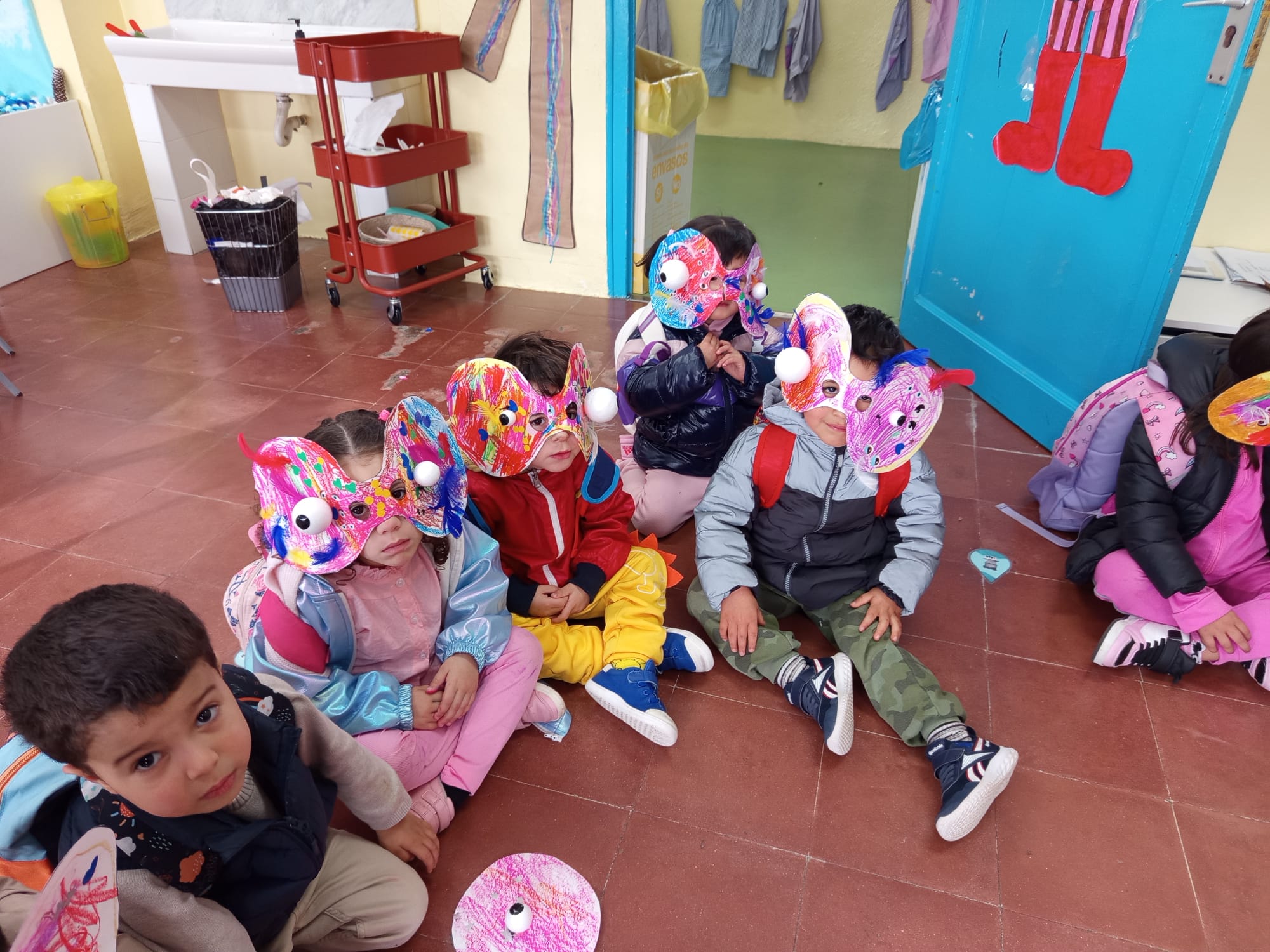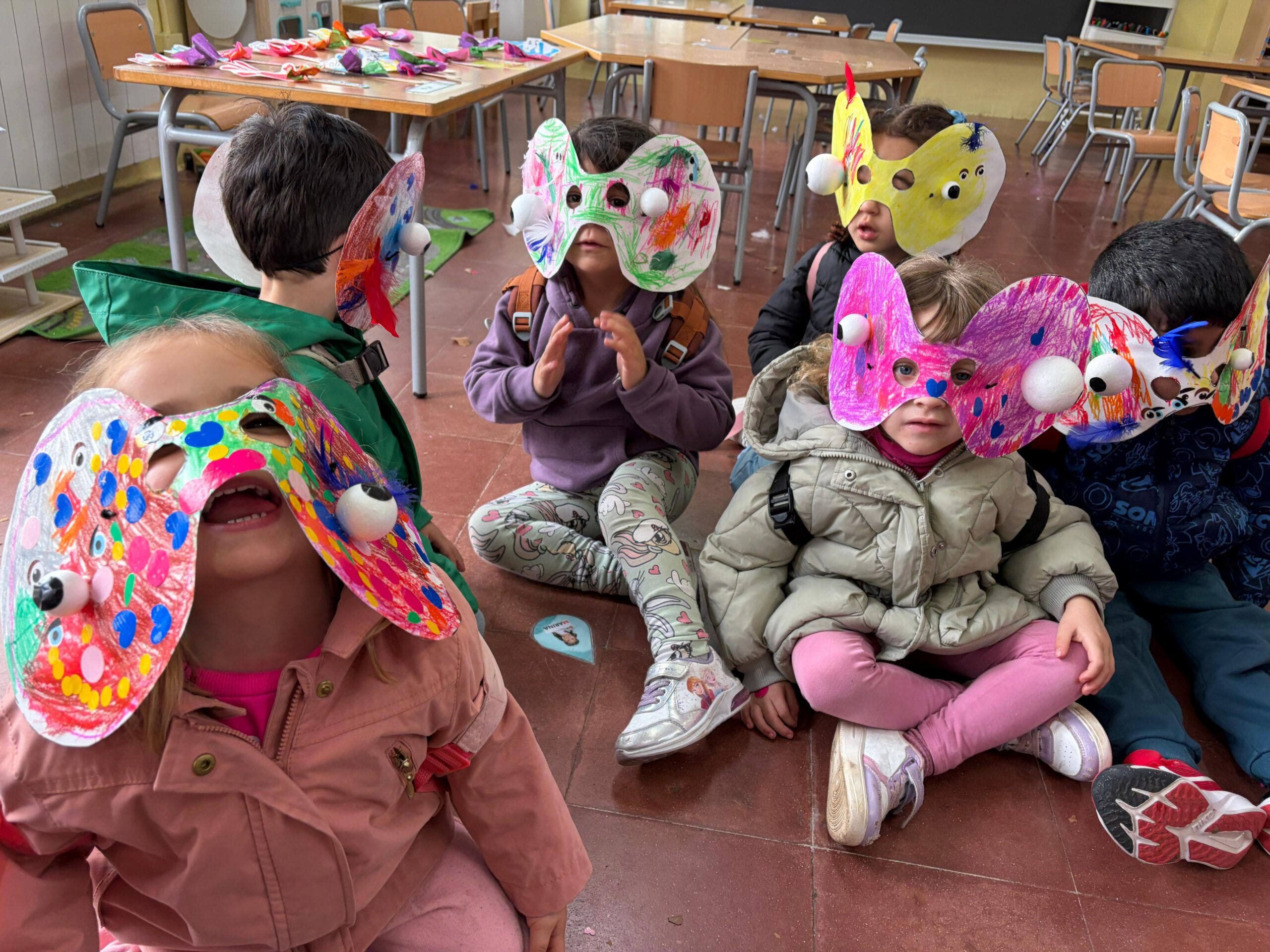 A l’Escola,  els nens i nenes de I3 estem emocionats amb l’arribada del Carnestoltes i, per preparar-nos per a les disfresses, hem fet una màscara molt bonica i divertida.
