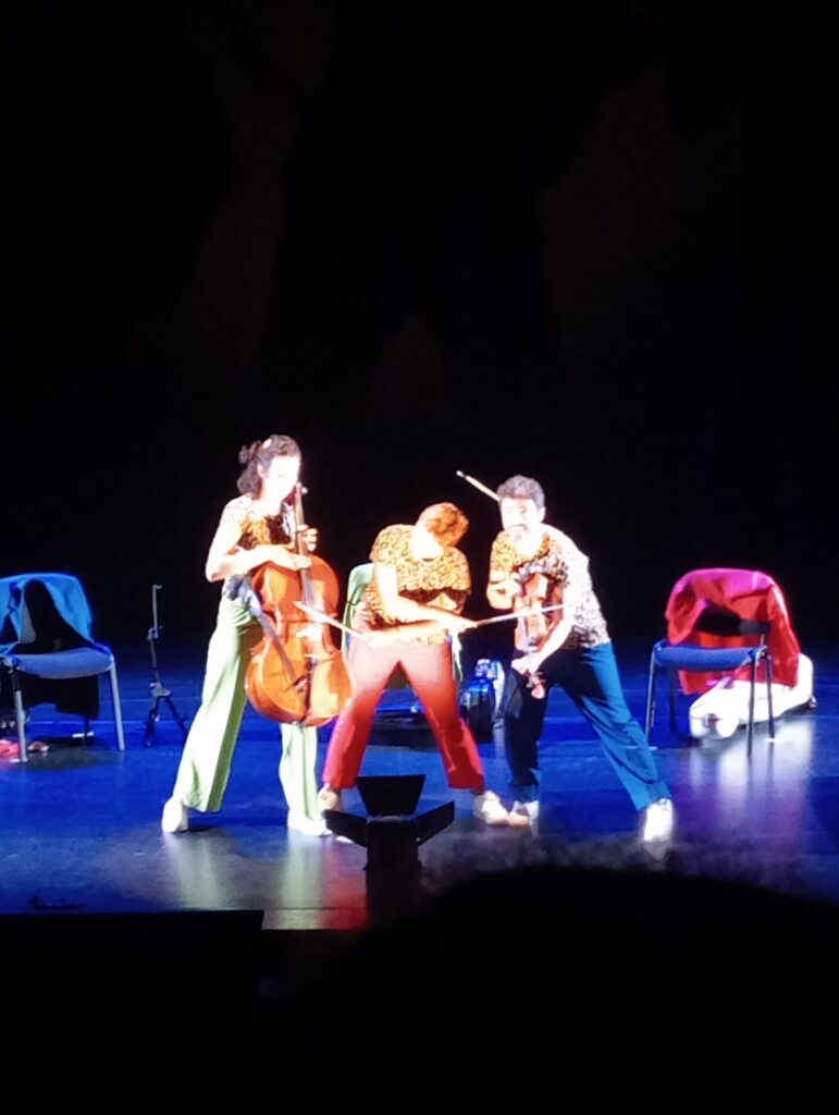Eren tres músics, dues noies i un noi, que tocaven el violoncel, el violí i el quintó, que és un instrument entre la viola i el violí. Van interpretar temes musicals des del segle XVIII fins ara. Clàssics, bandes sonores de pel.lícules, i cançons d’estils diversos fins a l’actualitat. Algunes cançons les coneixien ja que les havien treballat a les sessions de música.