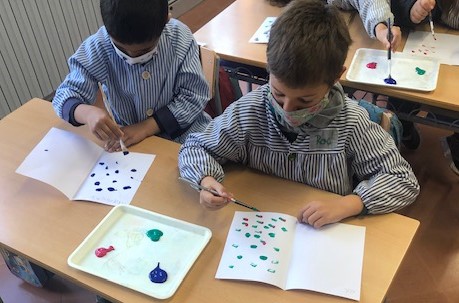 Dins el programa Innovamat, a la classe de primer hem treballat la simetria i l’eix de simetria tot fent d’artistes.