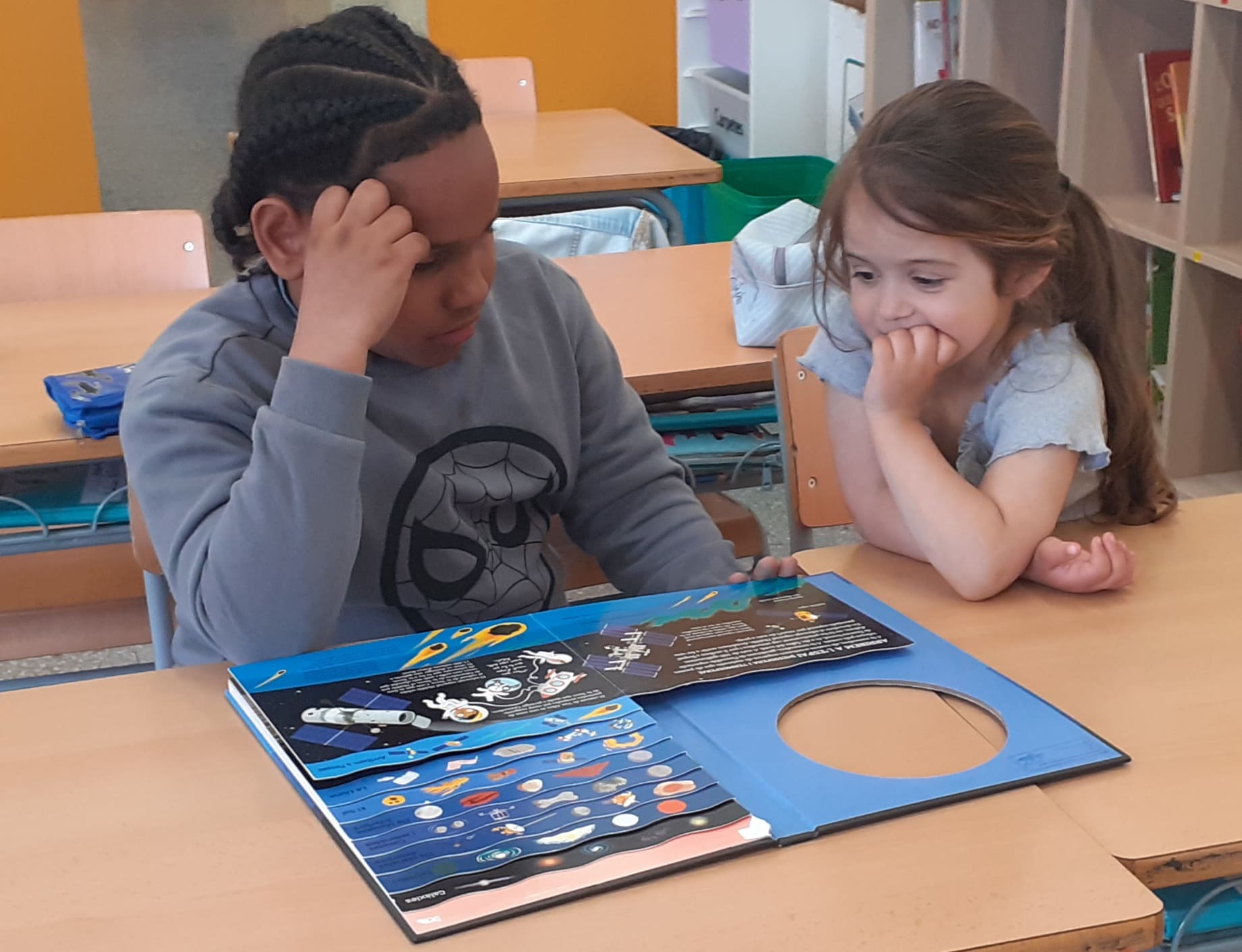 CELEBREM EL SANT JORDI A I-4 Feu un comentari / Per Natàlia / 23 d'abril de 2026 / General I4 Infantil Portada Avui hem celebrat la diada de Sant Jordi i els nostres padrins lectors ens han explicat un munt de contes. Ens ha fet molta il.lusió!!!