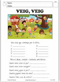 2. Fes la feineta: has de mirar la imatge i buscar paraules que comencin amb la lletra que et diu. Després contesta les preguntes.