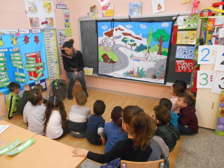 El dijous 21 vàrem rebre la visita d’en BLAUET un ocell del bosc i també vam conèixer el follet de Sant Llorenç que ens va ensenyar com hem de cuidar la natura. Vam conèixer una serp, un conill i una granota que dins d’un conte ens ho van explicar. Els papers a la paperera!!!! – ens van dir!!! -Nosaltres ja ho fem!!!