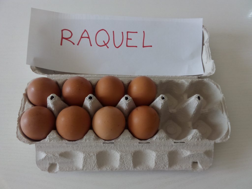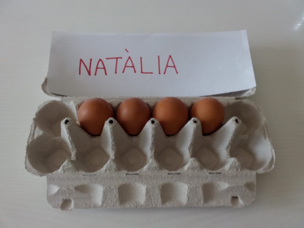 I AL COSTAT DEL NOM DE LA MESTRA ESCRIVIM EL NÚMERO D’OUS QUÈ HA COMPRAT.