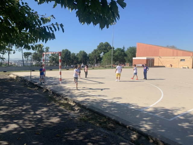 Els nens i les nenes de la classe dels pirates juguen a futbol a l’estona del pati.