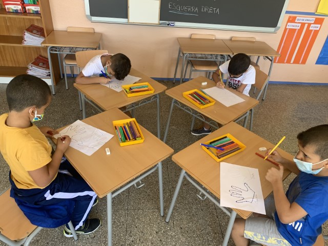 Els nens i les nenes de la classe dels pirates aprenen on és la mà dreta i la mà esquerra.