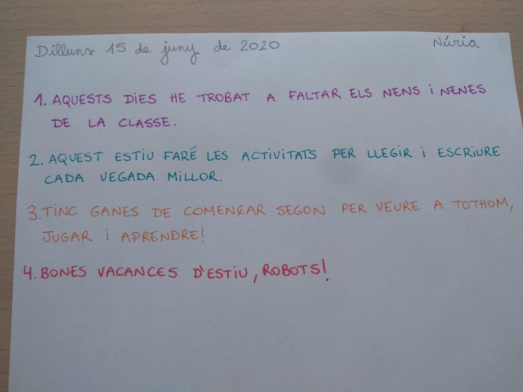 AQUESTA ÉS L’ÚLTIMA SETMANA QUE ESTEM A PRIMER. QUAN TORNEM A L’ESCOLA AL SETEMBRE JA FAREU… SEGON!! CANVIAREU EL NOM DE LA CLASSE, HAUREU CRESCUT UNA MICA, JA SABREU ESCRIURE I LLEGIR UNA MICA MILLOR…