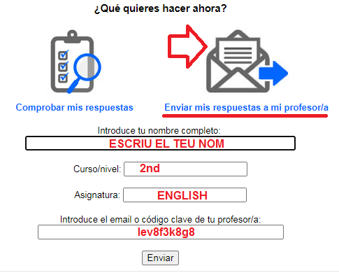3– SELECCIONAR LA OPCIÓ “ENVIAR  MIS RESPUESTAS A MI PROFESOR