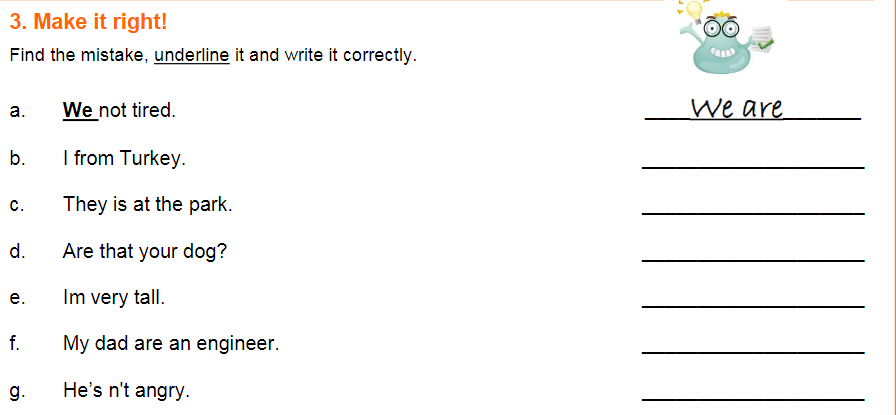 Finally, in the third activity, you have to correct the mistake in each sentence. (Per últim heu de corregir els errors que trobeu a cada frase.)