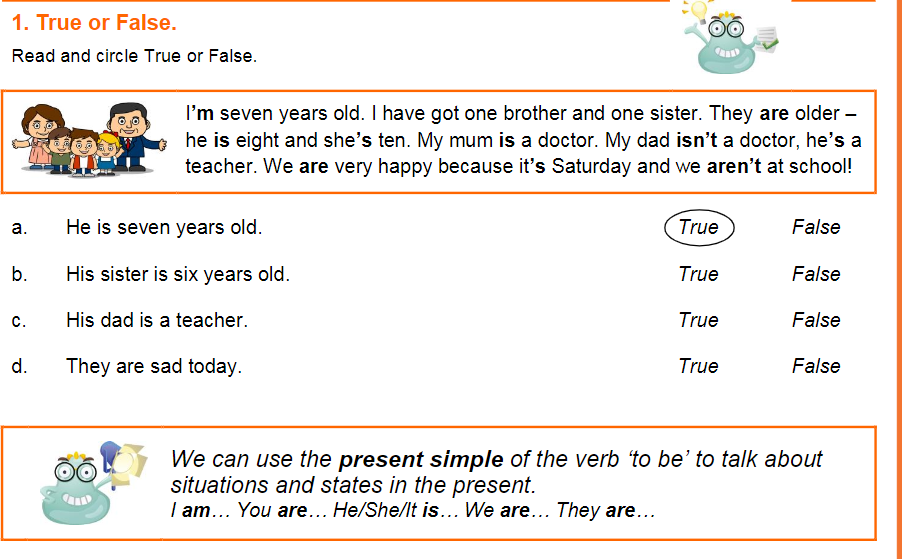 The 1st one is a reading and you have to say if the sentences are true or false. (La primera activitat és una petita lectura i després heu de llegir les frases que hi ha a sota i encerclar “True” or “False”).