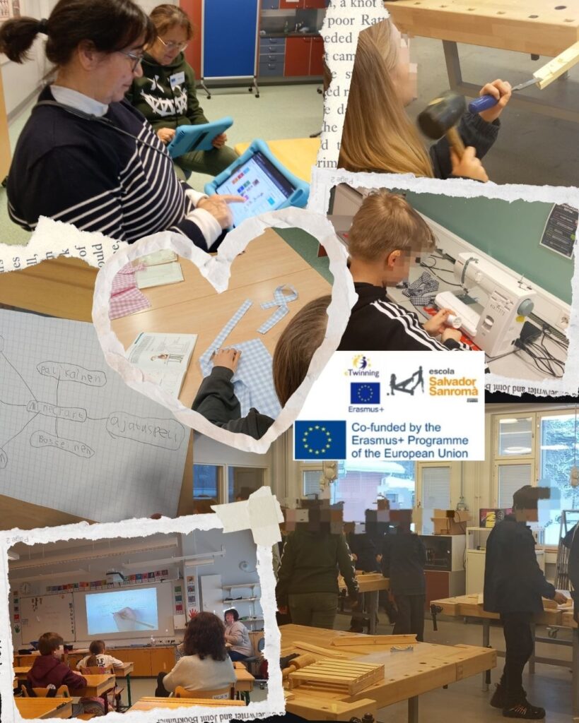 📌 Últim dia de Job Shadowing! ✨Avui hem viscut una jornada molt completa a l’escola! Hem visitat diferents aules i hem pogut observar activitats ben diverses:🧵 6è: grup dividit en dos tallers➡️ Soft craft: cosint un davantal➡️ Hard craft: construint un tamburet de fusta 🪵🔨📚 4t: classe d’anglès 🇬🇧➗🇫🇮 2n: matemàtiques i finès Un dia