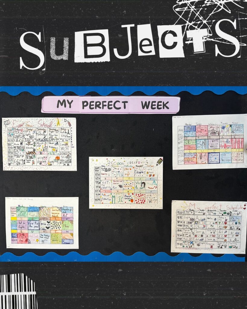 A l’àrea d’anglès hem treballat els school subjects i els days of the week d’una manera molt creativa. 🇬🇧Cada alumne ha creat el seu horari setmanal real i, després, en grups, han inventat un horari escolar imaginari. A més de les assignatures reals, han aparegut matèries tan originals com viatjar a la lluna 🚀, cuidar