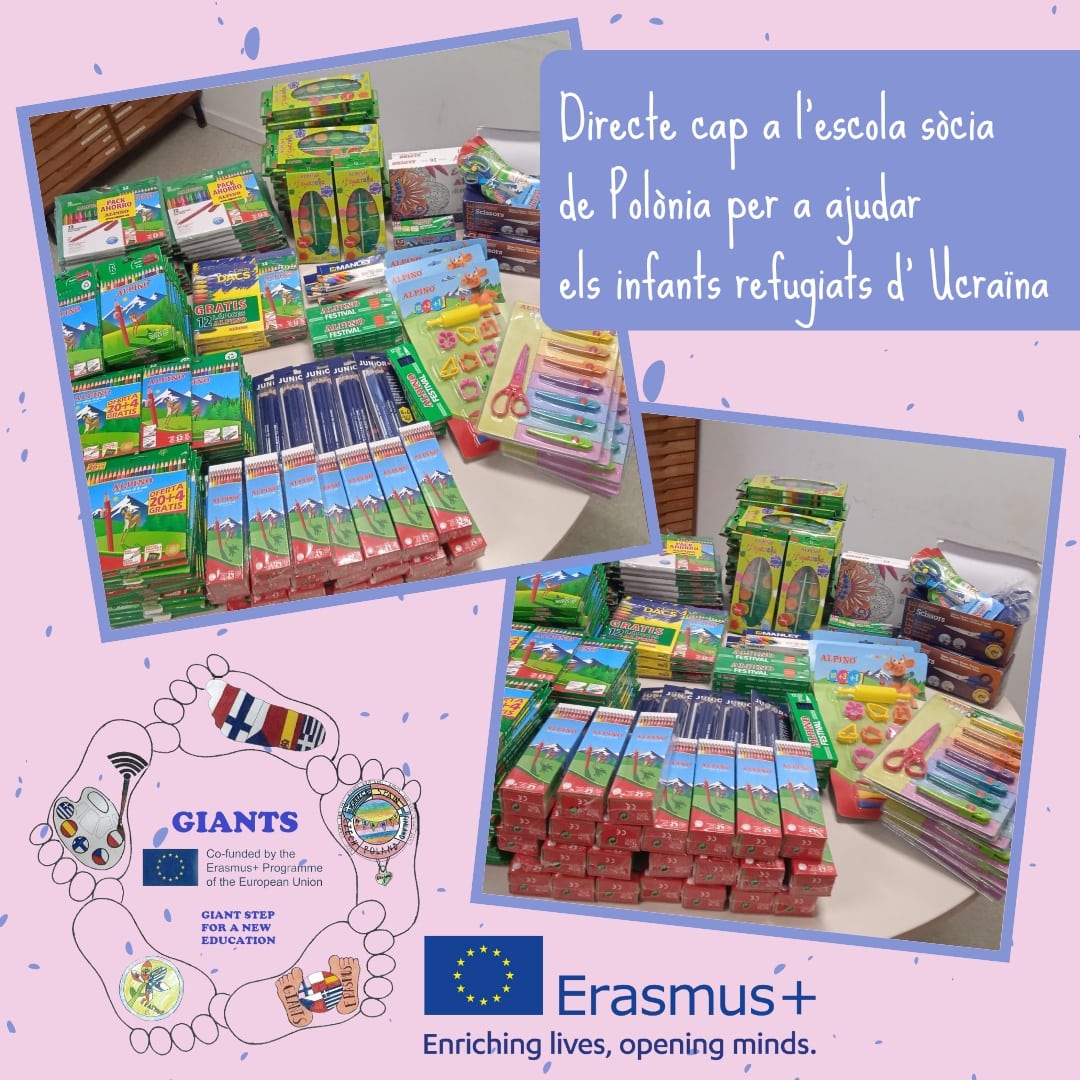 Agraïm la col•laboració i la donació d’aquest material escolar per part de l’empresa @flamagas_oficial i @alpinocolores dins de les nostres accions per ajudar els infants refugiats d’Ucraïna de l’escola sòcia de Polònia.