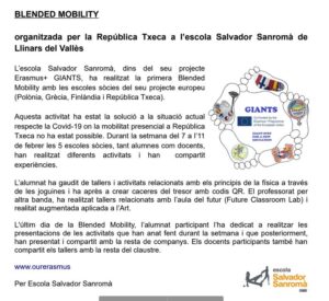 Blended Mobility Txèquia: Article Feu un comentari / Per admin / 8 de març de 2022 / Anglès ERASMUS General Metodologia Portada Primària Projectes / ERASMUS, Metodologia, Portada, Primària