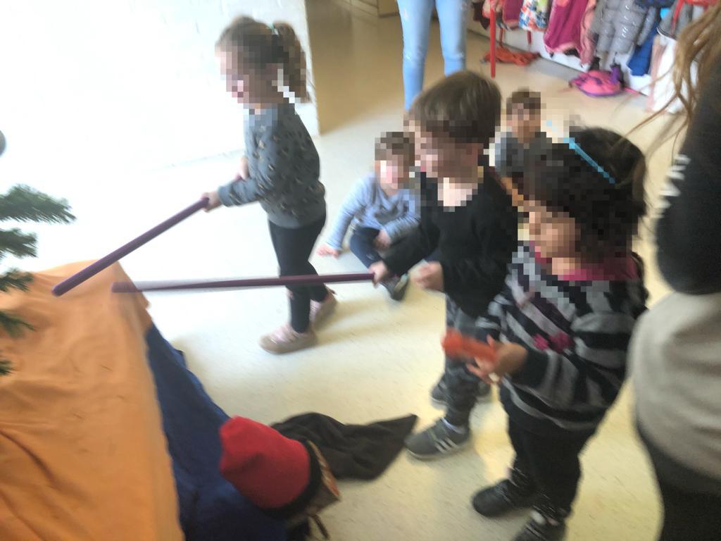 Els alumnes d’Educació Infantil (P3, P4 i P5) i els del Cicle Inicial (1r i 2n) han fet cagar el tió. Els ha cagat torrons i neules!!!
